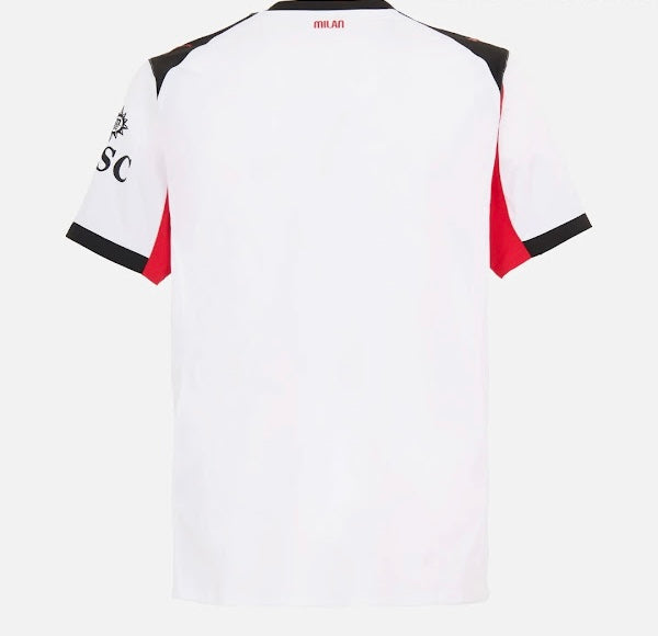 The AC Milan 25/26 Away Jersey showcases a sleek and modern design, featuring a clean white base accented with bold, contrasting red and black details. Made from lightweight, breathable fabric, it promises ultimate comfort for players and fans alike. The iconic club crest sits proudly on the chest, while subtle patterns add a touch of sophistication. The jersey combines style and performance, making it a perfect choice for supporting the team on and off the pitch. Ideal for showcasing allegiance, it embodies the spirit of AC Milan for the 2025/26 season.