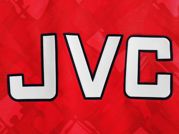 The Arsenal home jersey for the 1990/92 seasons had a classic and iconic design. The primary color of the jersey was red, the traditional home color for Arsenal. The jersey featured a distinctive and classic design with white sleeves, giving it a timeless look. The sleeves had a unique pattern with red and white stripes, and the shirt had a collared neck and short sleeves.